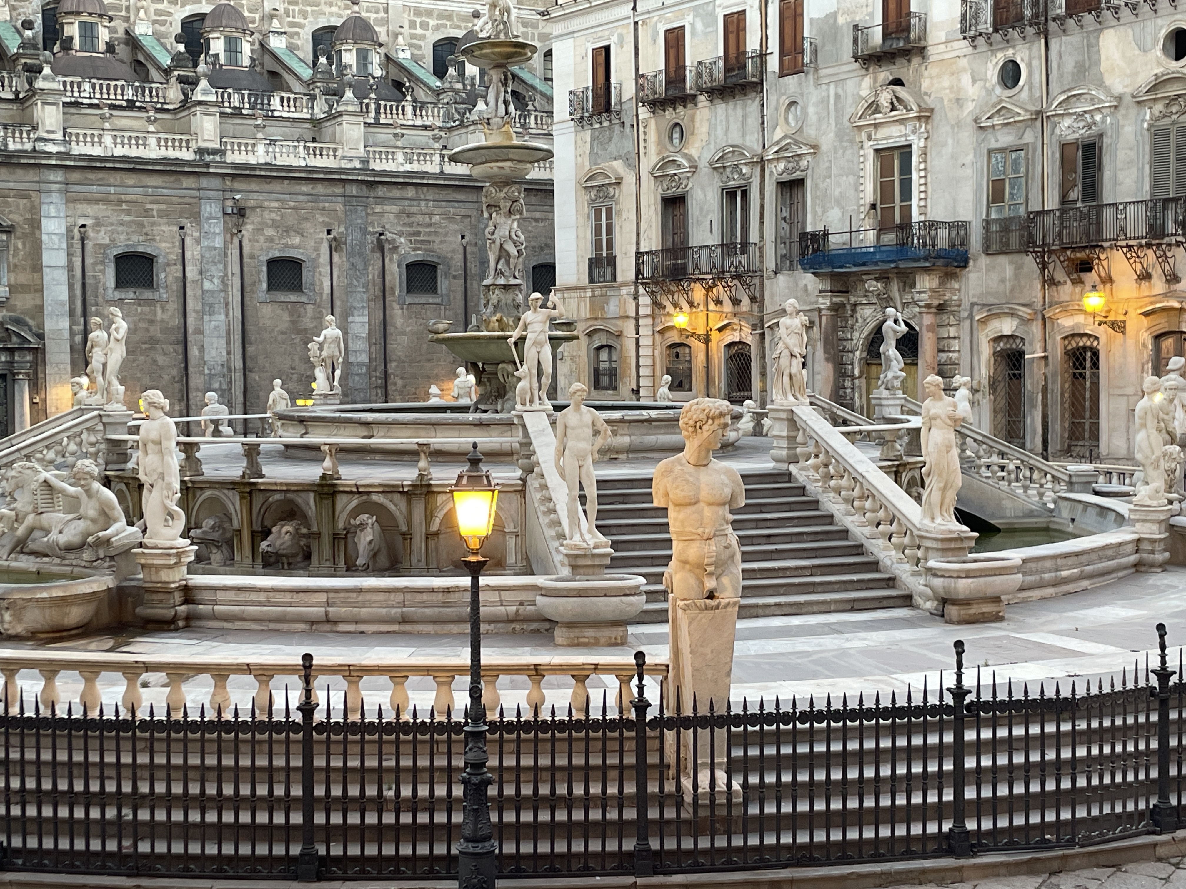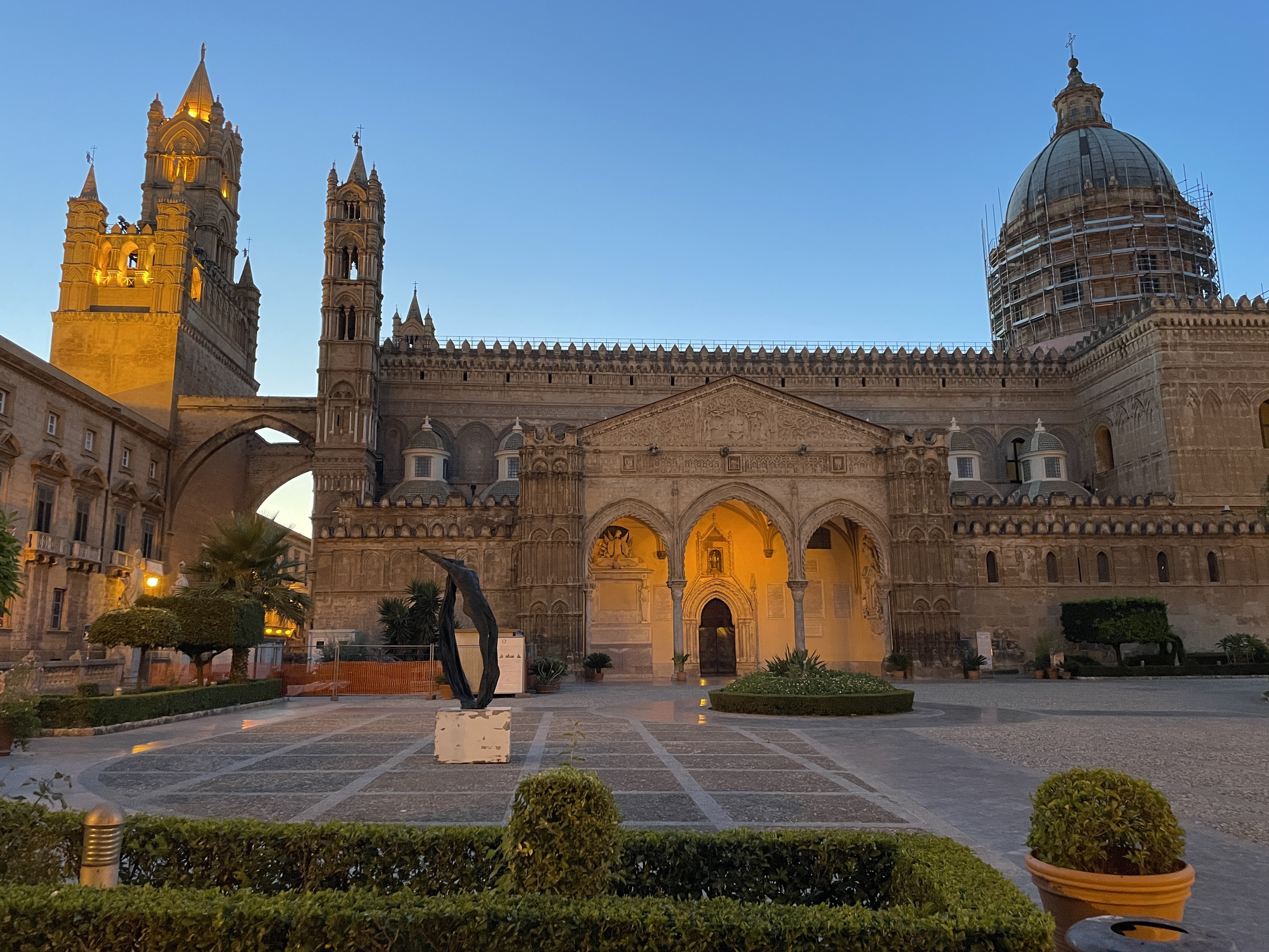 The four-hour journey was relatively painless, except for the stress caused by the dashboard, which lit up like a Christmas tree with warning lights. I was cautious not to put any more fuel in the car than necessary, which led to us arriving with very little fuel left and rolling into the gas station on fumes. However, we made it on time and in one piece, and to my surprise, I managed to get my deposits back (if you’ve driven in Italian cities before, you’ll understand what I mean). After a short wait, the taxi arrived, and we were on our way into the city. As we drove through, I felt a sense of relief knowing that we had returned the car and I wouldn’t be driving through the city. We arrived outside Port La Cala, where Martina from our host’s team greeted us. Our loft apartment is located in a beautiful old building, although it lacks an elevator, which is not uncommon in these historic structures. Nevertheless, the apartment is lovely, with views of the port in the front and the mountains in the rear. Most importantly, we’re only a 5-minute walk from the old town, and no attraction is more than a 20-minute walk away in any direction. After chilling out on the terrace for a few hours and taking a quick shower, we ventured out into this wonderful city for the first time.