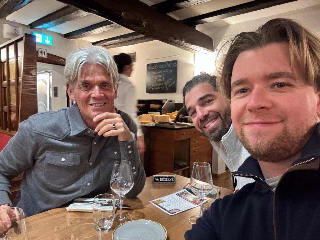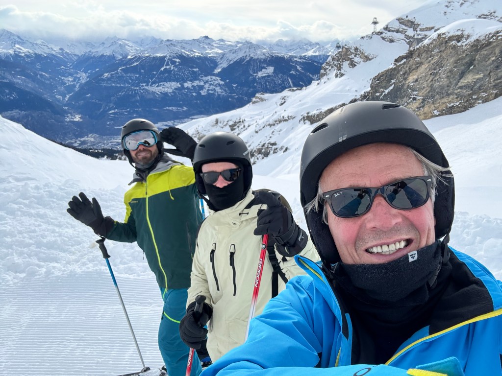 The next morning brought clear blue skies, which made for a fantastic day as we skied from Cry d’Er across to Aminona. It was one of those memorable days on the slopes. Seb had been talking about raclette all day, so that evening we went to Château Villa, known for its five-cheese raclette with cheeses from the Rhône Valley. Christien went for the meats. It was a great meal and a lovely atmosphere.