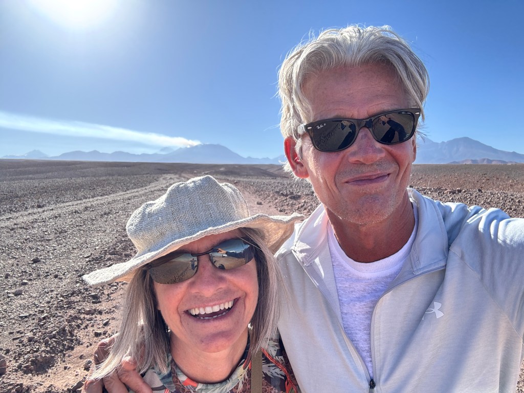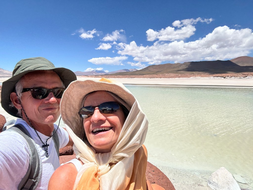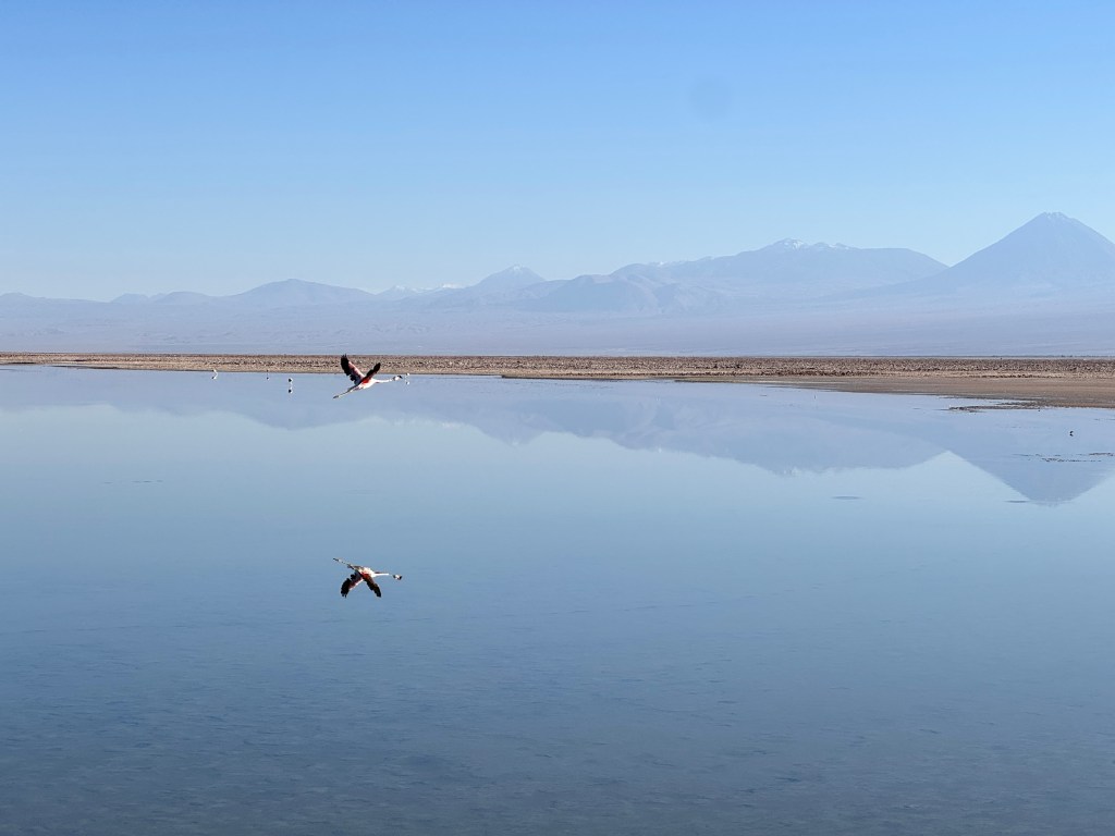 The Chileans take their custodial responsibility for the land very seriously. Rachel wasn’t allowed to open her sun umbrella yesterday in one of the parks, as it might disturb the birds, and today there was no talking once we were beside the salt lakes.