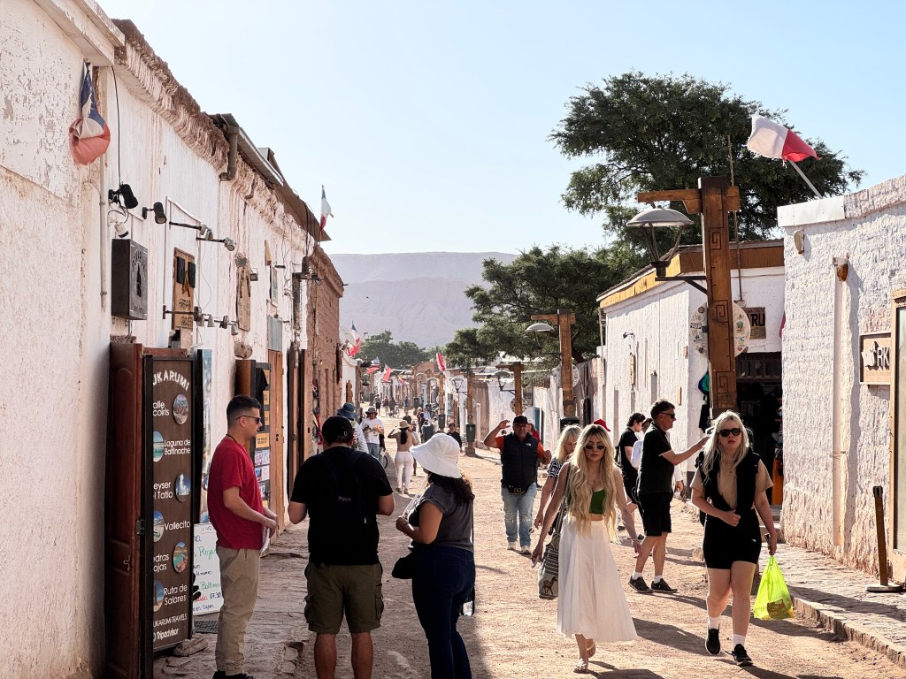 Once we’d checked our luggage and sailed through immigration (domestic flights really are easier), we boarded the plane. About two hours later, we landed in Calama, a purpose-built town, as most are in the Atacama Desert. Shortly after, we were on the transfer bus carving our way through the barren landscape, and about an hour later we arrived in San Pedro de Atacama. It looked like a town made of half-finished buildings, assembled from every material imaginable.