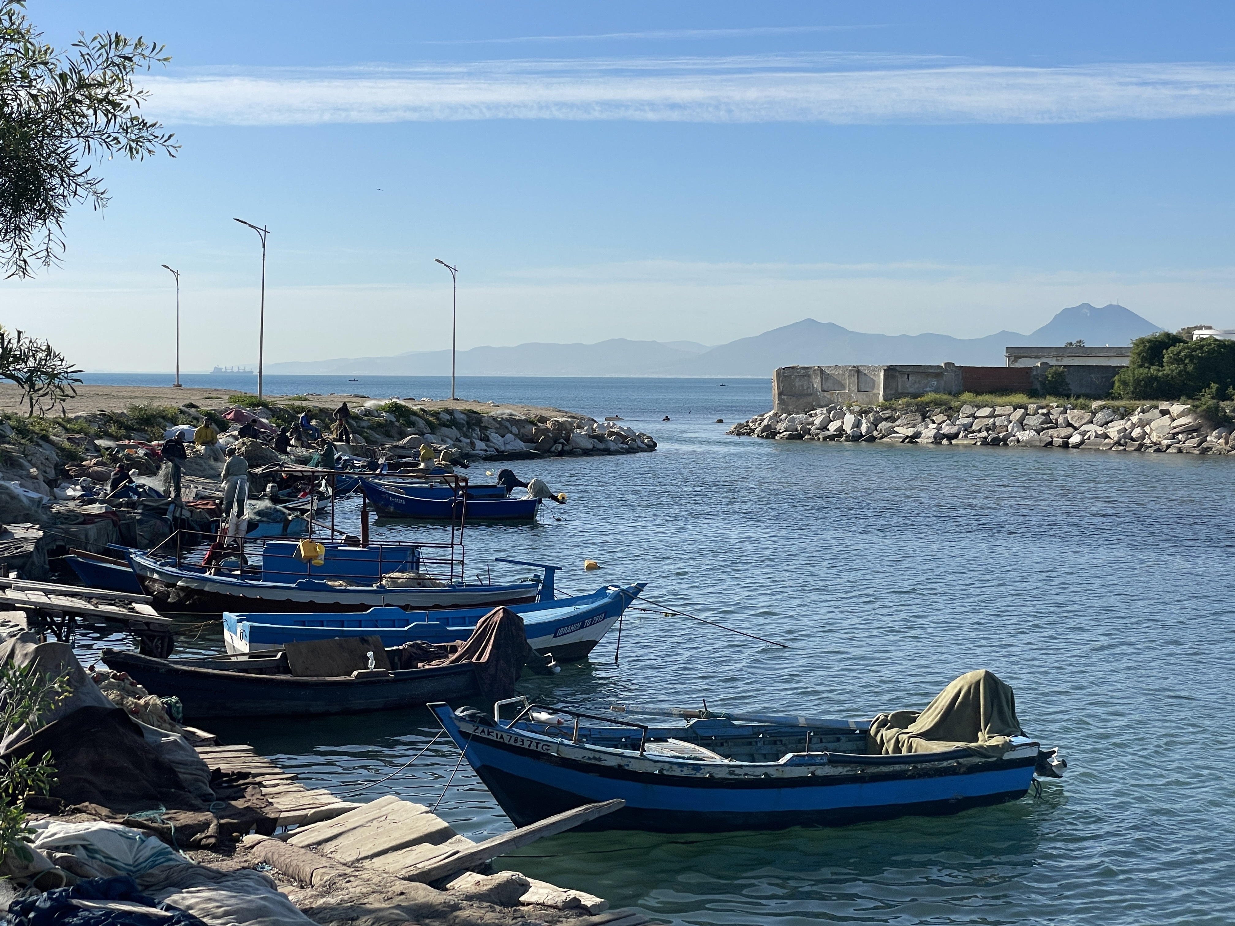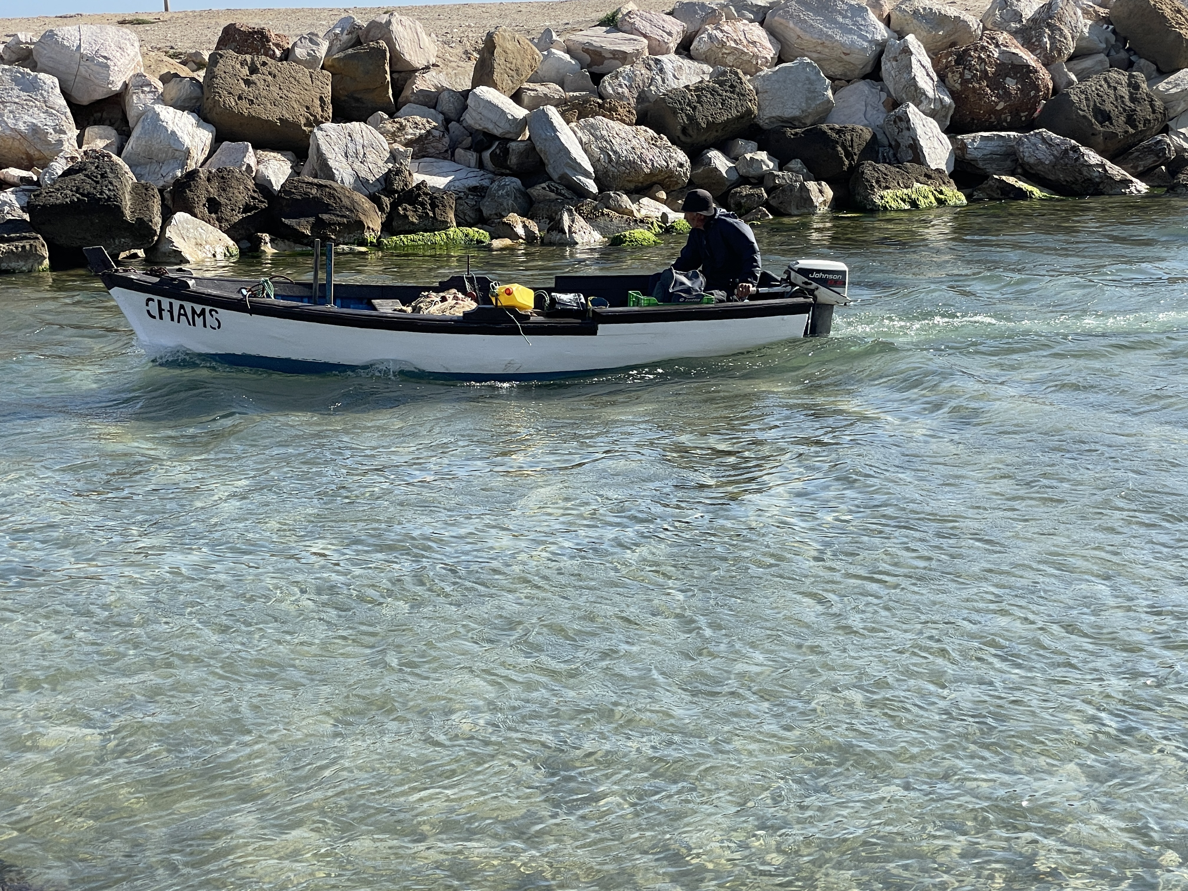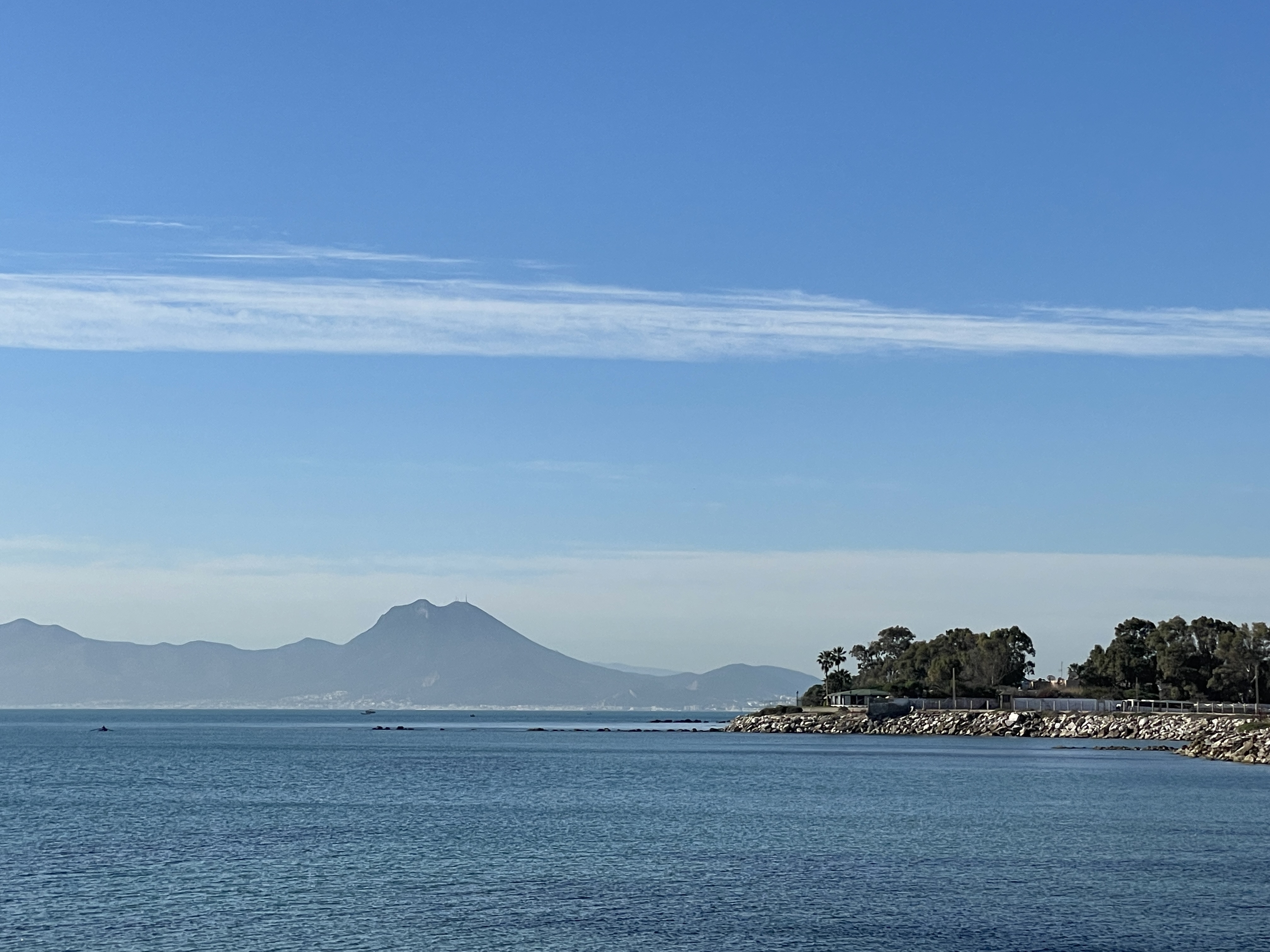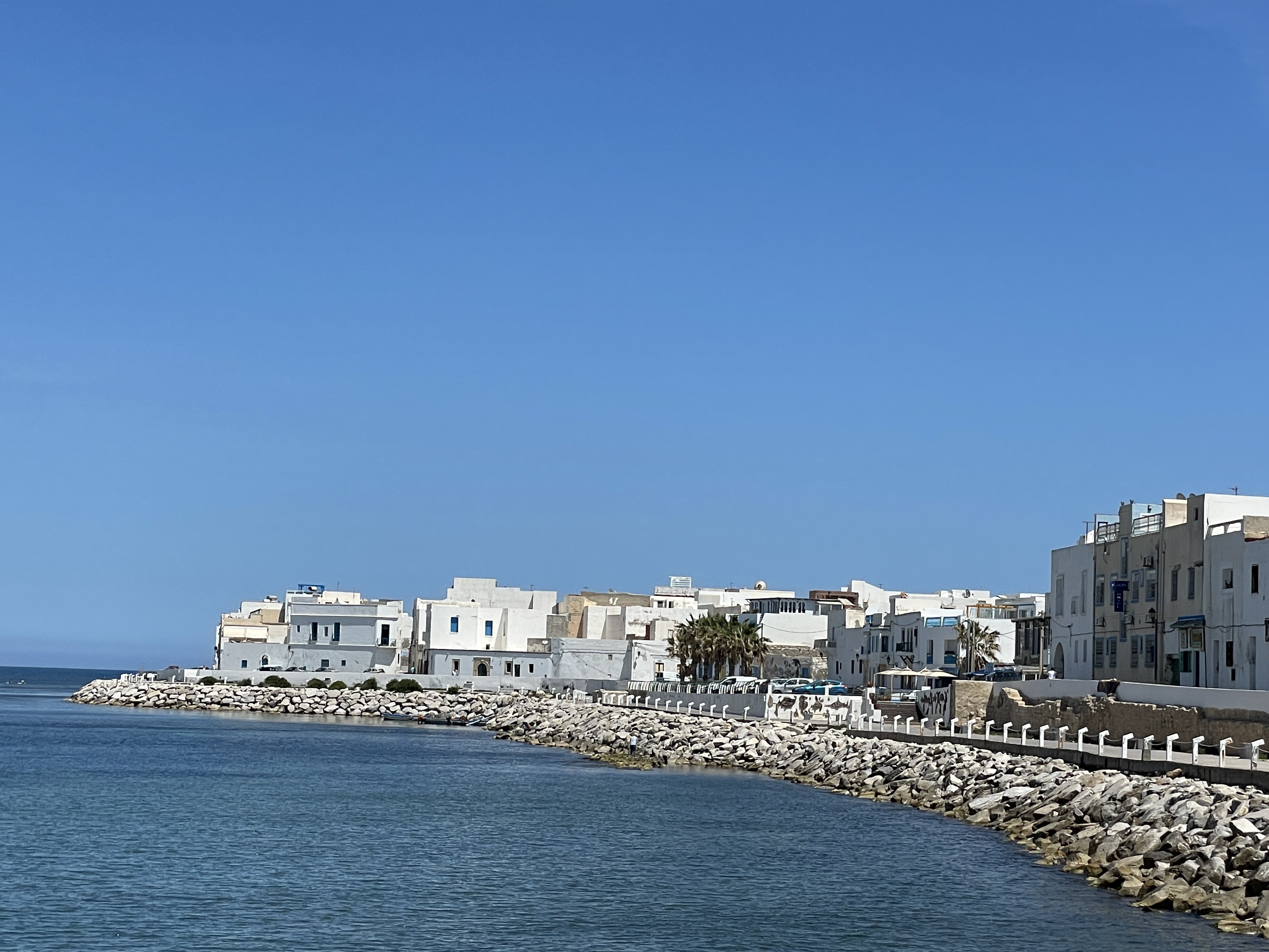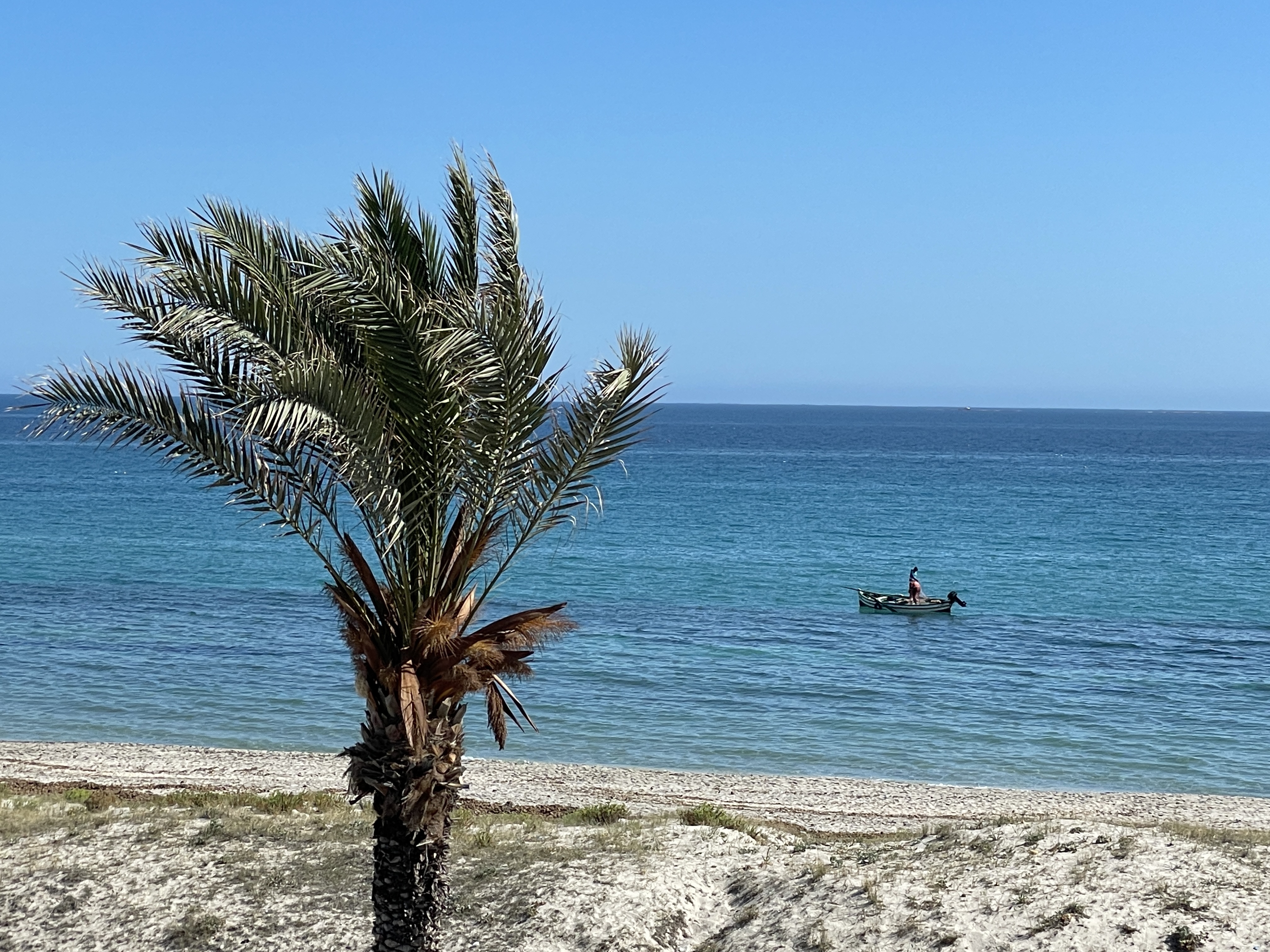 Our comfortable car arrived late Saturday morning for what was to be a 220km journey south. The main highway runs through the middle of the country, unfortunately not along the coastline but through endless olive groves. The older trees look like twisted, gnarled statues, neatly lined up like sentinels. About three hours later, we arrived in Mahdia, which is located on the most easterly peninsula of Tunisia. The crescent bay stretches some 240km up to Kelibia at the top, with a sandy coastline from one end to the other. From our terrace, we have an unobstructed view across the entire panorama, which is simply incredible.