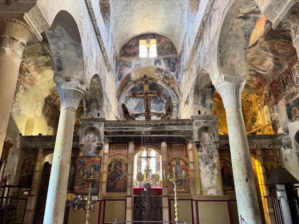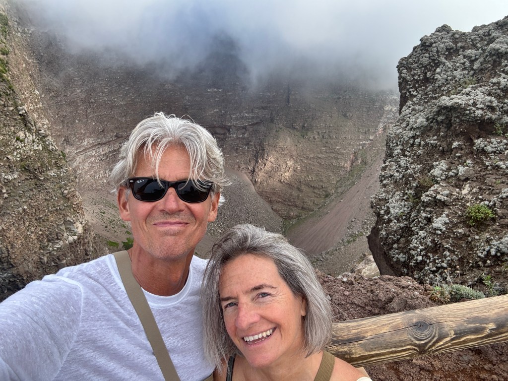 After grabbing lunch on the go, we boarded the bus for the 30-minute twisty climb up to Mount Vesuvius, followed by a further 30-minute walk to the crater. Unfortunately, by the time we reached the summit, the crater was mostly shrouded in cloud.