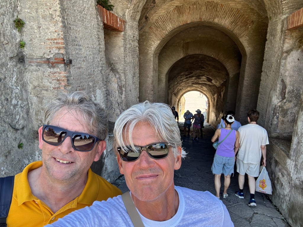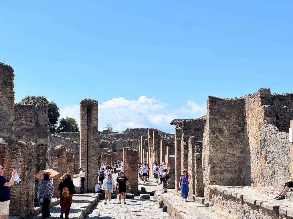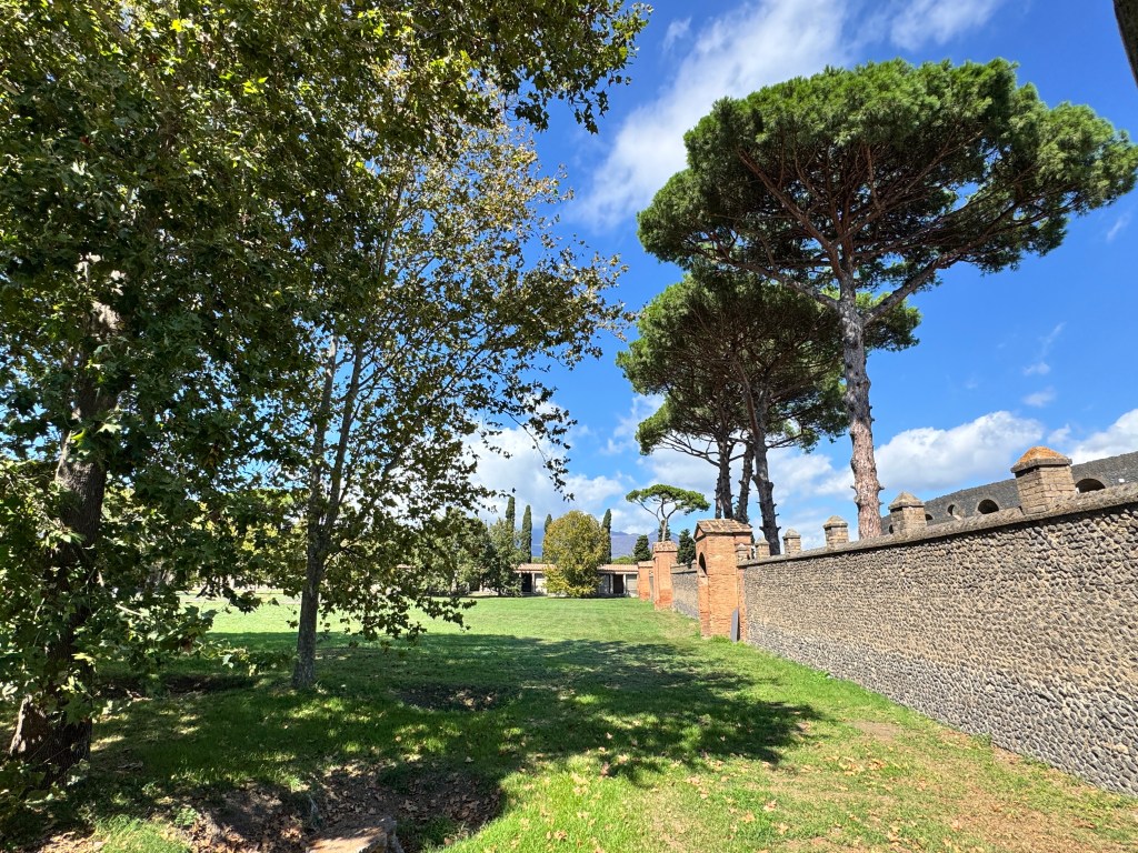 We boarded the train to Pompeii late in the morning for a relaxed one-hour journey. Once we arrived, we booked a mid-afternoon bus to take us up to the volcano. In the meantime, we set off on foot to explore Pompeii, which is set in some truly beautiful countryside.