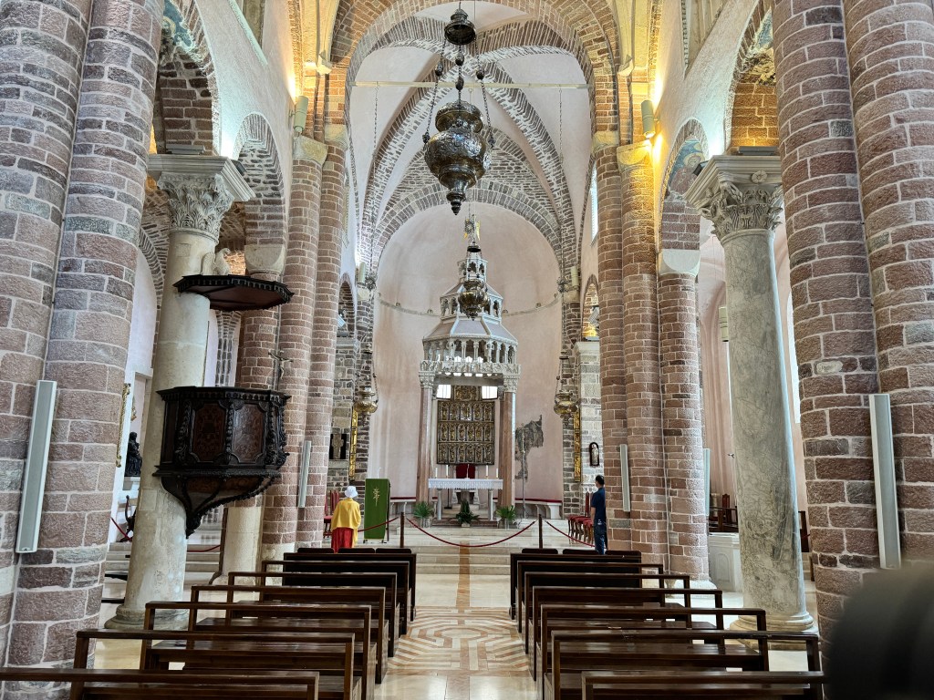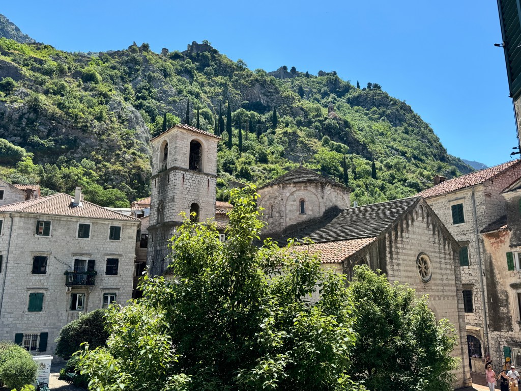 Our first point of interest was the old town of Perast, which clung to the right side of the bay and was once a large Venetian shipyard. Our first stop was at Lady of the Rock, the second of the two islets in the bay (the first being St. George Island). This historic tiny island features a centuries-old monastery and cemetery, surrounded by tall, picturesque cypress trees. Unfortunately, the island is completely private, much to my secret relief. Instead, we pulled up alongside the small jetty at Lady of the Rock to explore the old church. The island itself is a man-made project undertaken by two brothers who sunk more than 150 old and confiscated ships filled with rocks to create it. While the church is still in use today, it has become more of a tourist attraction.