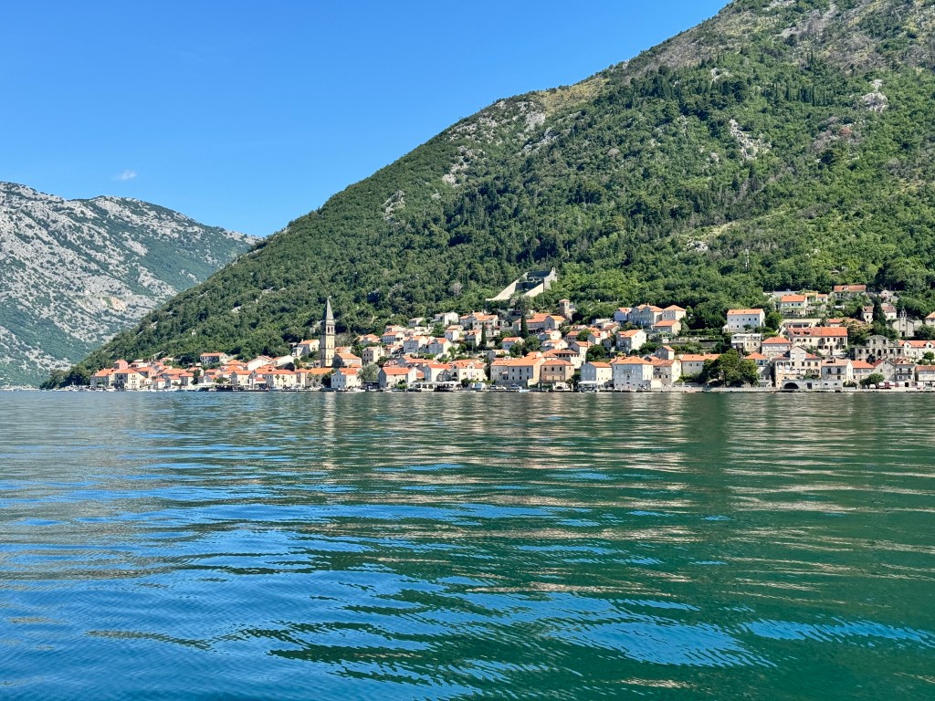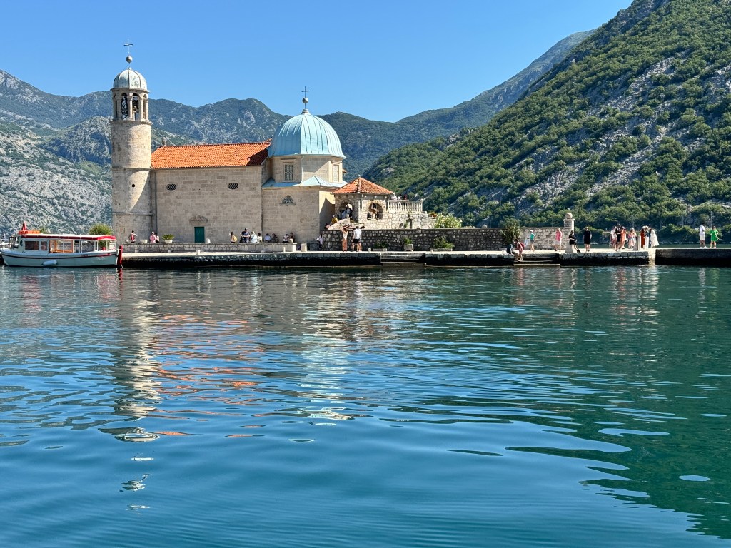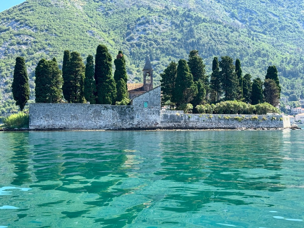 We had booked a boat to take us around the bay and out into the Adriatic, eager to see some local landmarks. Wanting to make the most of the day, we arranged for a taxi to pick us up and take us to the dock in Kotor early in the morning. The afternoons were getting hot, and the bay and sea could get busy and choppy, so an early start was ideal. The boat we had chosen was both new and comfortable, with plenty of shade for Mum, ensuring she stayed comfortable throughout the journey.
